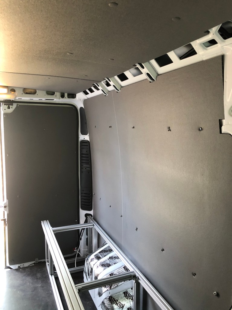 While the common walls and ceilings of many vans are shiplap wood or other labor intensive installs, I decided to go functional, quick and easy.