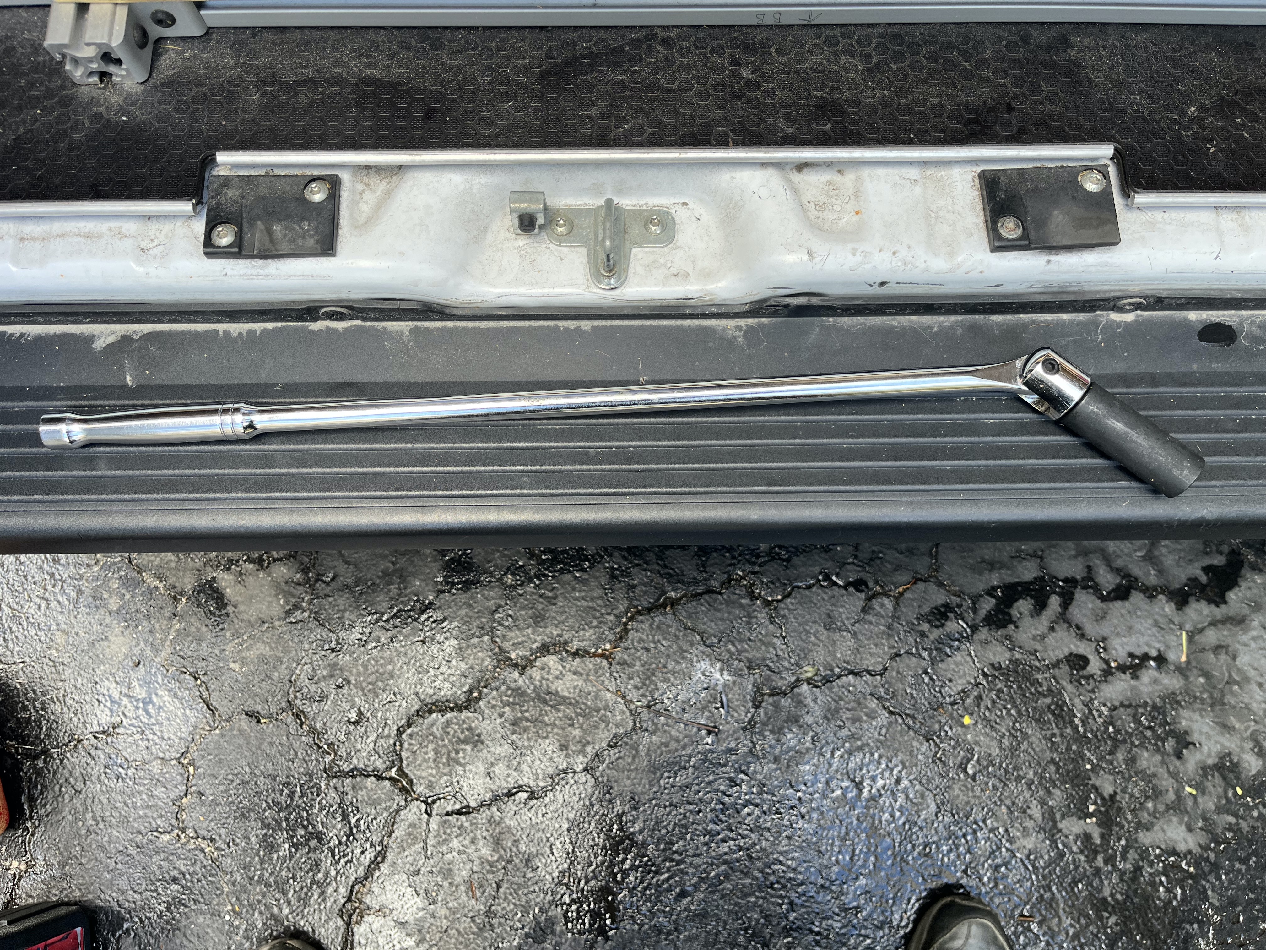 Call these what you will: Tire wrench, Breaker bar, whatever… The extra long handle gives you a bit more power when it really counts.